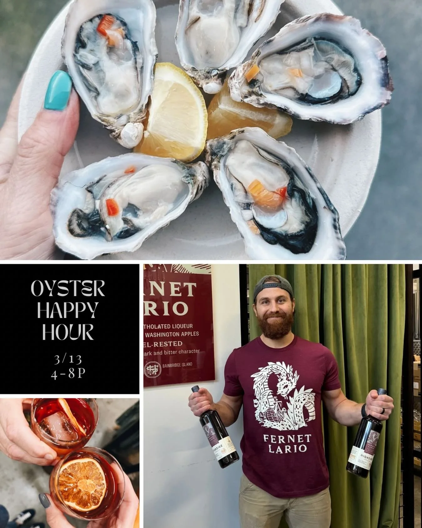 Enjoy cocktails, live music, wine, oysters, and small plates from us and our neighbors